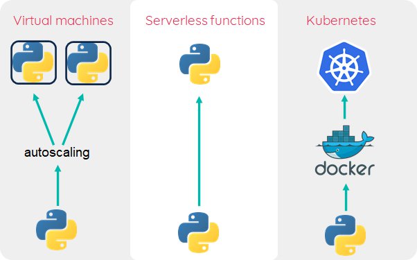 - Serverless functions or Function as a Service (FaaS). This option requires uploading the model code and invoking the function. Serverless functions are (often) limited in their duration and memory. You invoke the function with different parameters, for example belonging to different tires. The FaaS framework will take care of spawning independent processes and the underlying resources instantly.