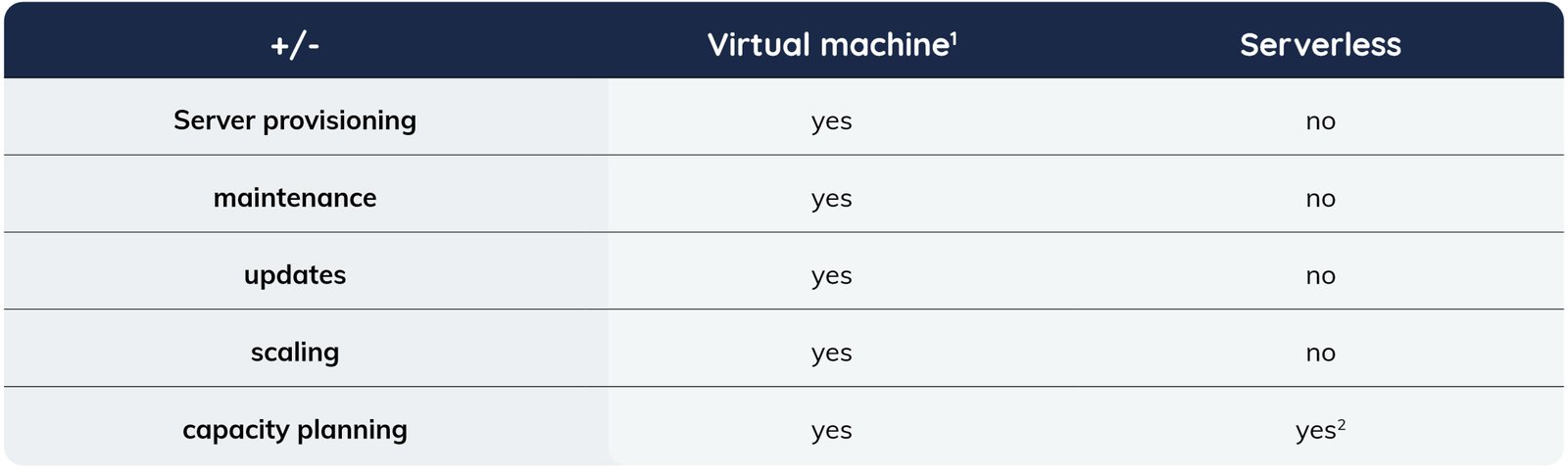 A number of time-consuming tasks are avoided here if serverless is chosen: