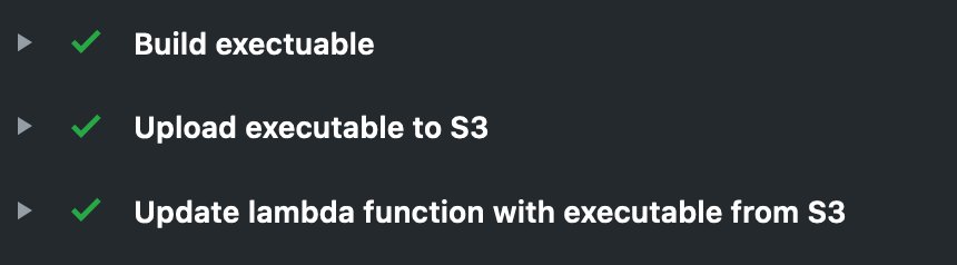 CI/CD pipeline tun to deploy the Go code to AWS Lambda. YAML is found here.