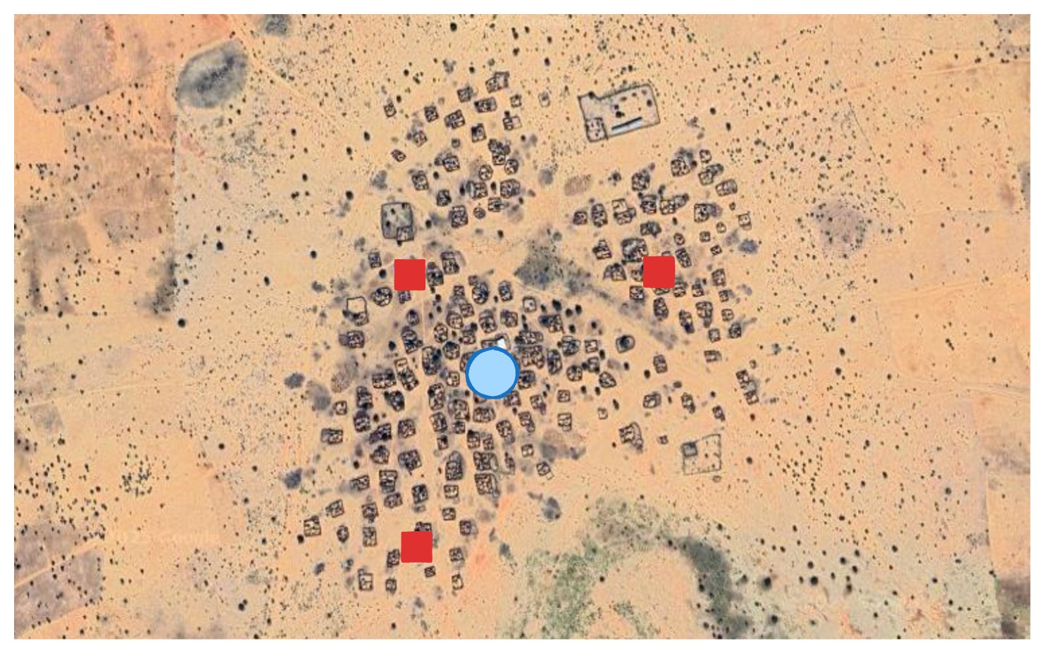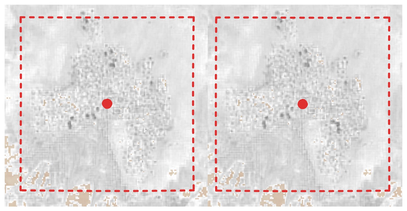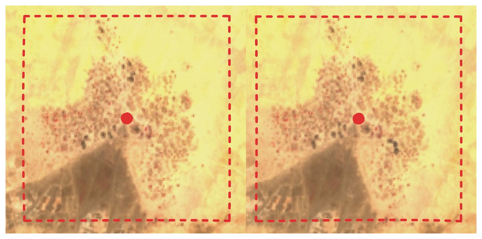 We reduce false positives by ignoring detections that occur outside human settlements. We've made a custom geometry for Sudan's urban areas by dissolving Google Open building footprints and buffering them with a fixed radius. This approximation isn’t perfect, but it's a useful filter.