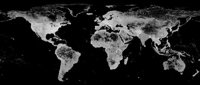 Feature density of the GeoNames database. We use this database to tag burn events with the nearest place names.