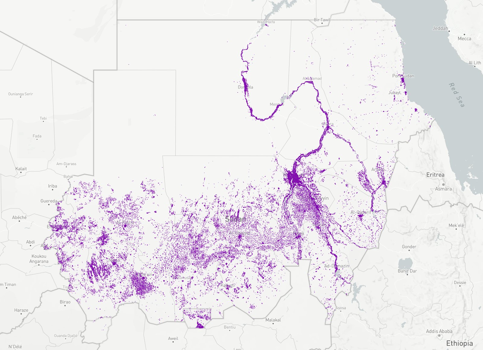 The Urban Areas filter of Sudan. We use this as a geo filter to focus on urban areas only.