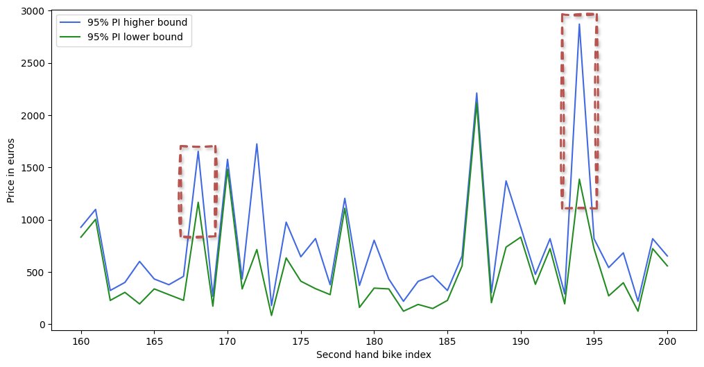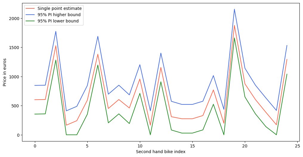 Comparing the generated prediction interval to a single point estimate for the price of second hand bikes: