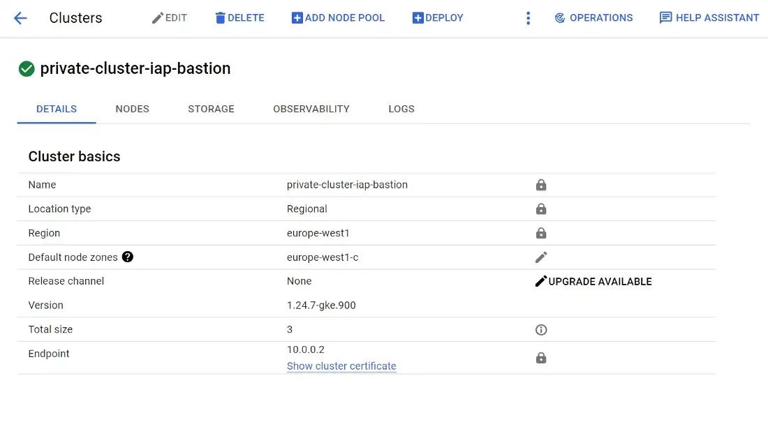 - The GKE cluster: Google/beta-private-cluster