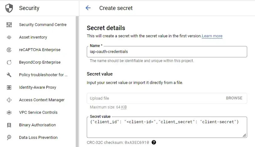 And then upload the resulting client and secret as a managed secret: