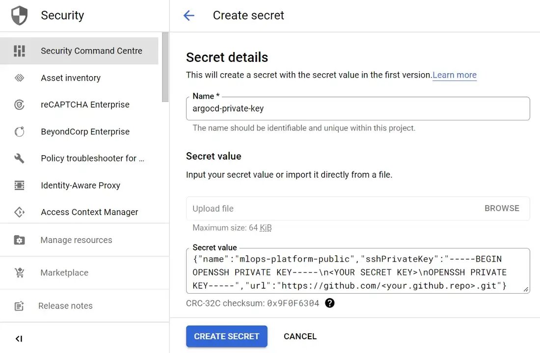 Then you need to upload the private key as managed secret so that K8s can access it later on as an external secret: