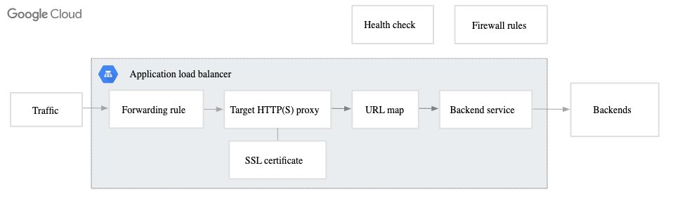 A load balancer in GCP can have a number of different configurations but in our case consists of the following components: