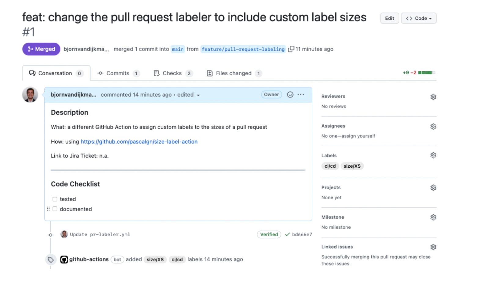 pull_request_templateto give some guidance on this - be small → automatically assign size labels to the pull request using Github actions