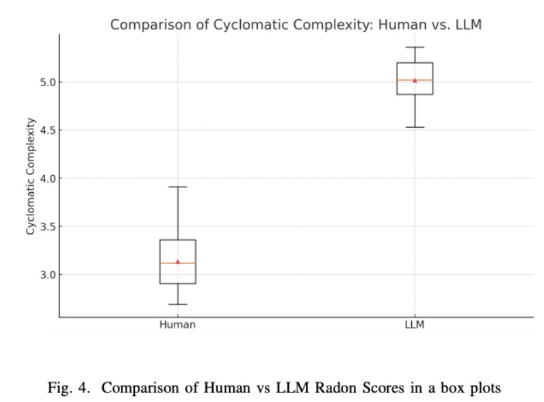 It became apparent through numerous studies that AI suggestions can be overly verbose or use unconventional structures, making the codebase harder to read and maintain. Cyclomatic complexity is a software metric that quantifies the number of linearly independent paths through a program’s source code, effectively measuring its structural complexity. Higher cyclomatic complexity indicates more decision points, making the code harder to understand, test and maintain. The paper Comparing Human and LLM Generated Code: The Jury is Still Out! details a comparison on this metric of code produced by humans and GPT-4, revealing that GPT-4 tends to generate code with significantly higher complexity. This increased complexity naturally impacts maintainability by making the code more difficult to comprehend and more prone to errors. For an individual developer, accepting such code means that future edits or debugging will become more challenging. For teams, this can accumulate as technical debt. The code that meets the immediate need becomes difficult to extend, test, or modify, ultimately slowing down development as the codebase grows.
