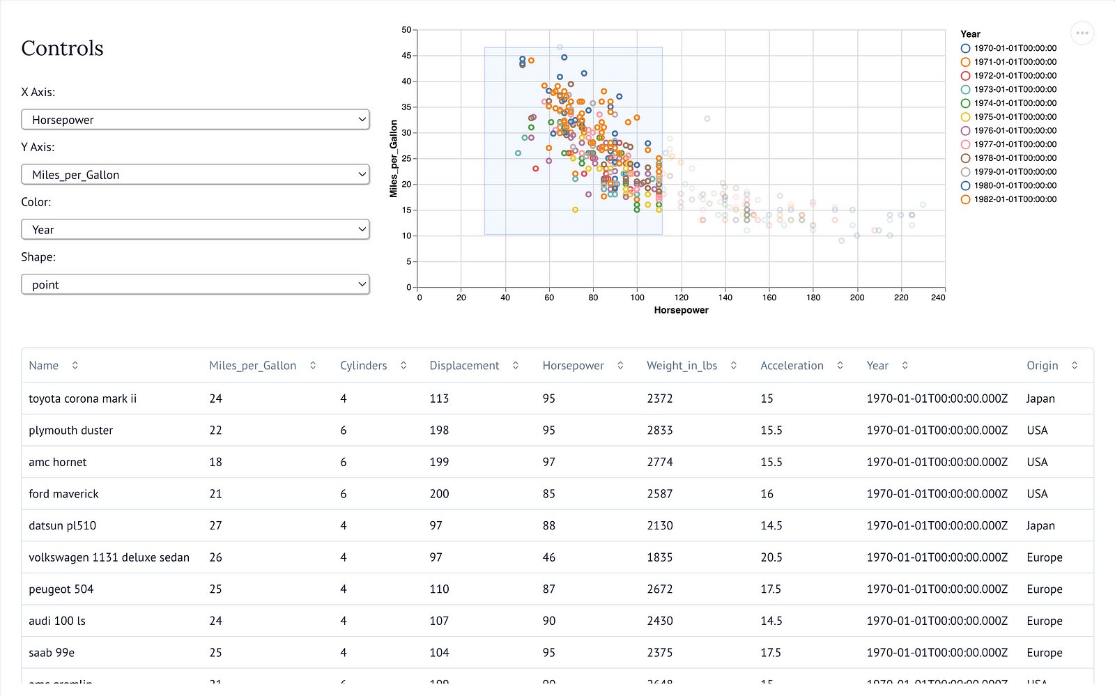 Even if you agree that this sounds great, visualizations need be, well…, visualized. Luckily, marimo provides some great examples to show what marimo is capable of. This example in particular really reminded me of a use case that I would normally make a quick dashboard for in Dash. Although Dash already does a great job of making this a simple process, this just takes it to the next level by combining the notebook and interactive visualization into a single framework. Other great examples are the ISS notebook, the reactive plots notebook, and the Pokémon Statistics notebook.