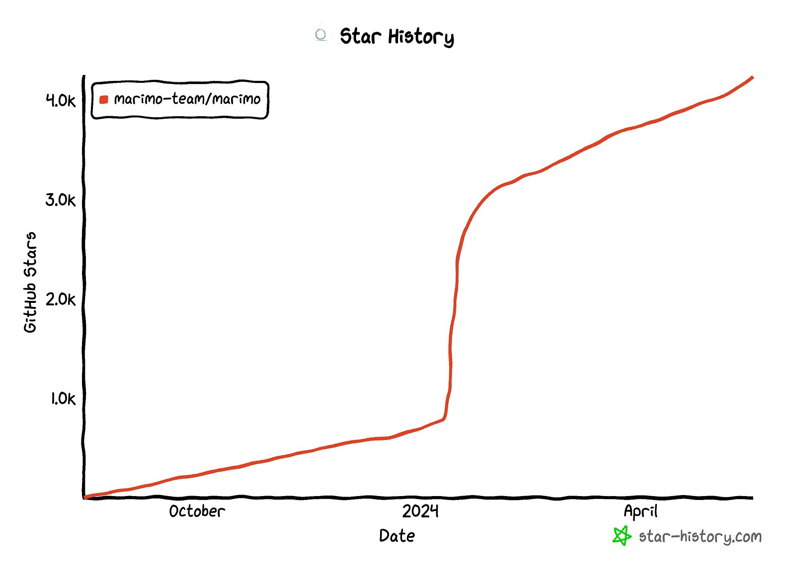 The initial commit took place on the 14th of August 2023 according to the git history. Since it was quite an extensive commit it seems that the team had already invested quite some time into the development of it before then. Since then it has been growing in popularity, or at least in Github stars, and it really took off in January 2024. Whether it was a popular New Year’s resolution or just a slow week at the office, more and more people have adopted marimo as their Jupyter notebook replacement. Let’s dive into why they have done that and whether you should too.